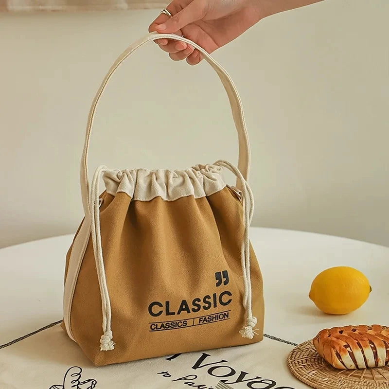 with Drawstring Closure and Hand: Insulated Canvas Rectangle Lunch Bag